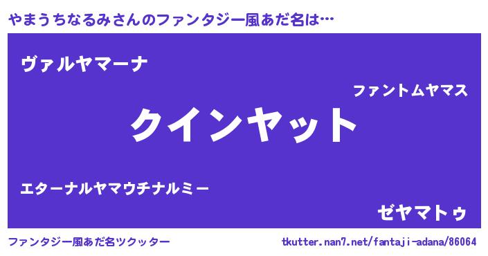 | 男性向けラノベタイトル風あだ名 | 『おまえをオタクにしてやるから、俺をやまうちなるみにしてくれ! 』 |