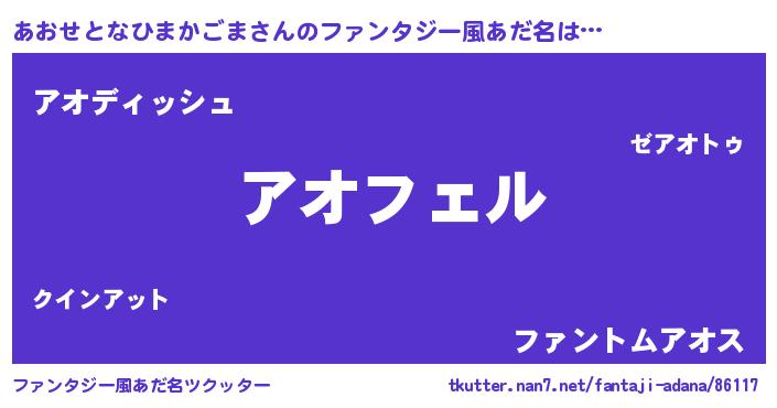 | 胡散臭い通販商品みたいなあだ名 | 『必ず成功する霊験あらたかなお札…その名も「あおせとなひまかごま」』 |