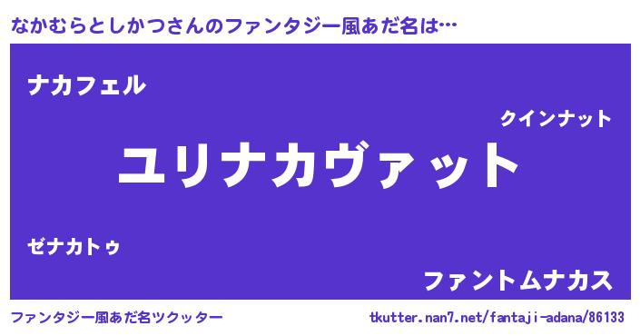 | 男性向けラノベタイトル風あだ名 | 『ナカムラトシカツスレイヤー』 |