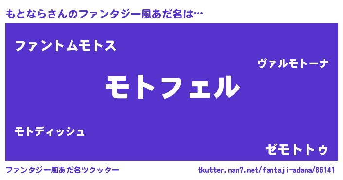 | ヒーロー風カッコイイあだ名 | 『スーパーモトナラ』『幻影騎士モト』 |