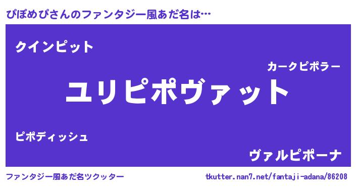 | ヒーロー風カッコイイあだ名 | 『正義の使者ぴぽめぴ』『仮面ピポダー』 |