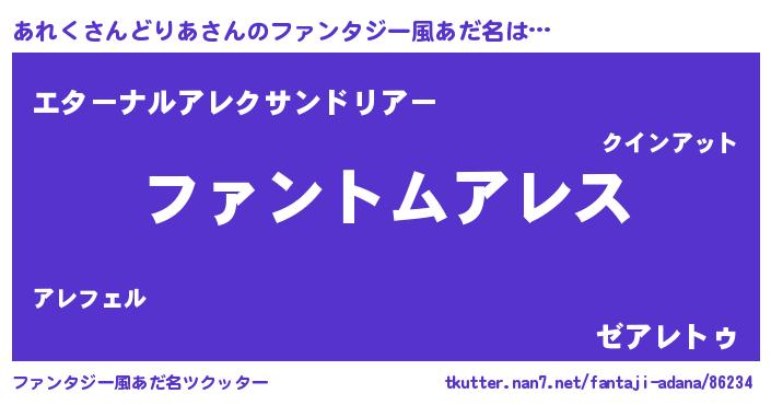 | 意味不明あだ名 | 『とにかく怪しいあれくさんどりあ』 |