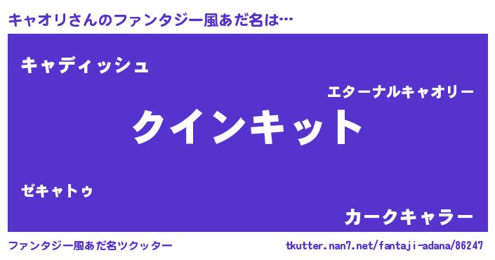 | 女子向けラノベタイトル風あだ名 | 『キャオリ恋絵巻』『キャオリの契約王妃』 |