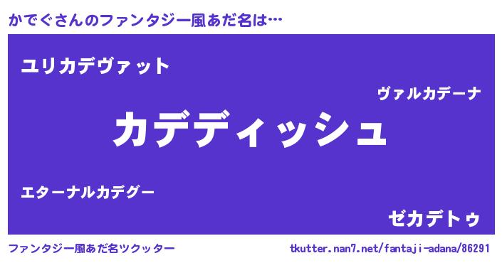 | 男性向けラノベタイトル風あだ名 | 『かでぐという概念が存在しない退屈な世界 』 |