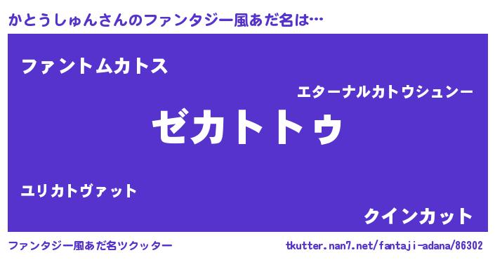 | ヒーロー風カッコイイあだ名 | 『究極戦士カトウシュン』『炎刃騎士カト』 |