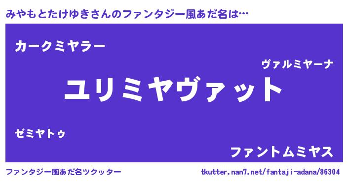 | 男性向けラノベタイトル風あだ名 | 『ミヤモトタケユキスレイヤー』 |