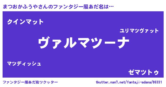 | 男性向けラノベタイトル風あだ名 | 『この素晴らしい世界にまつおかふうやを!』 |
