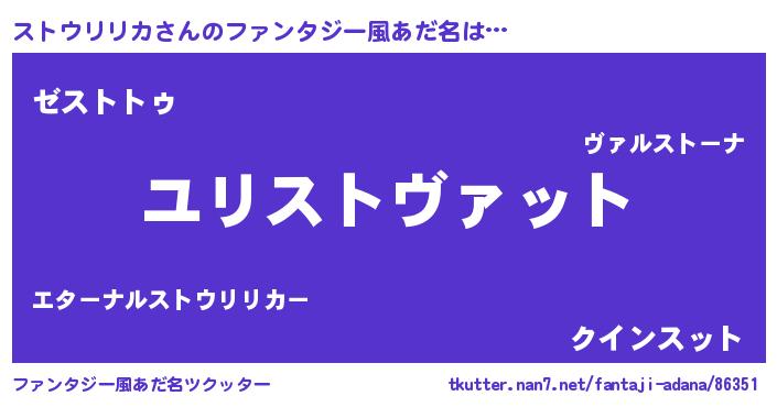 | 男性向けラノベタイトル風あだ名 | 『転生したらストウリリカだった件』 |