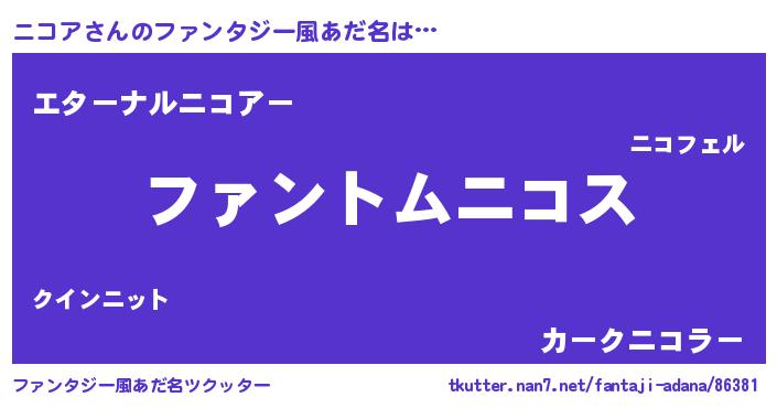 | ポケモン風あだ名 | 『ヒニコア』『ニコゴンZ』 |