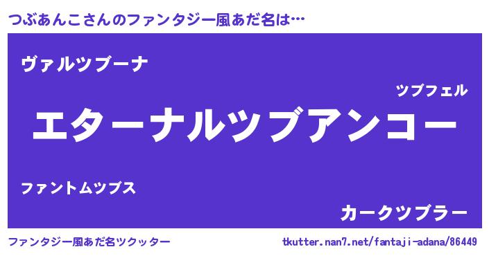 | 女子向けラノベタイトル風あだ名 | 『つぶあんこの雑貨屋さん』 |