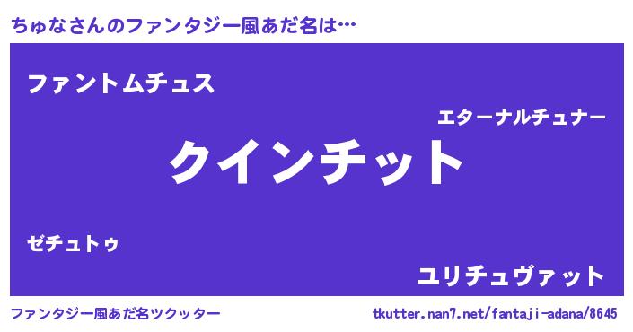| 女子向けラノベタイトル風あだ名 | 『死神ちゅなの再婚』『ちゅな様がみてる』 |
