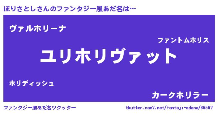 | 男性向けラノベタイトル風あだ名 | 『ほりさとし~年齢イコール彼女いない歴の魔法使い~』 |