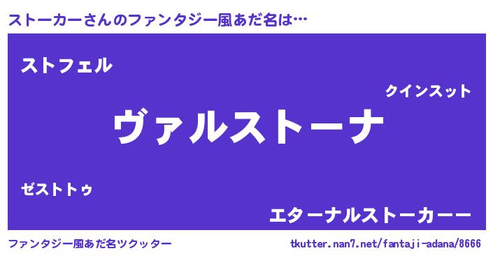 | 意味不明あだ名 | 『住所不定無職ストーカー(8歳)』 |
