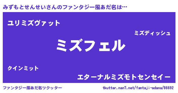 | ヘコむあだ名 | 『みずふぇ~』『牛乳』『みずお』 |
