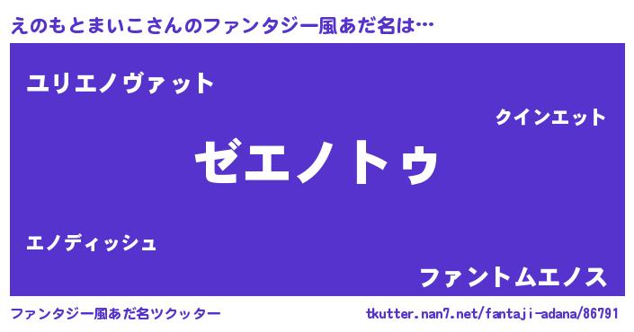 | 意味不明あだ名 | 『自称えのもとまいこ』 |
