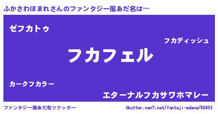 | 男性向けラノベタイトル風あだ名 | 『フカサワホマレアートオンライン』 |