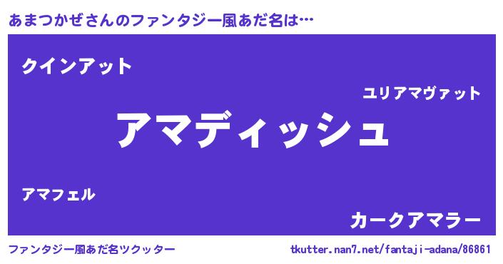 | 意味不明あだ名 | 『永久保存あまつかぜ』『自称あまつかぜ』 |
