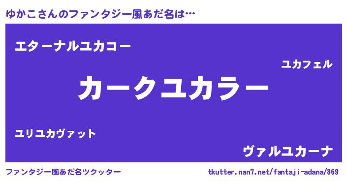 | ポケモン風あだ名 | 『ユカゴンZ』『メロユッカ』 |