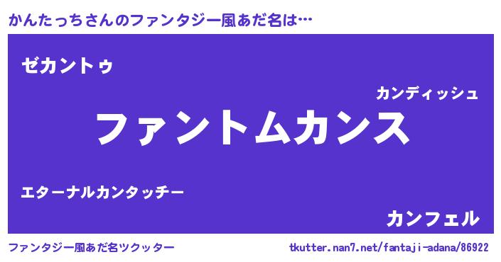| 女子向けラノベタイトル風あだ名 | 『かんたっちの卵を拾いまして』 |