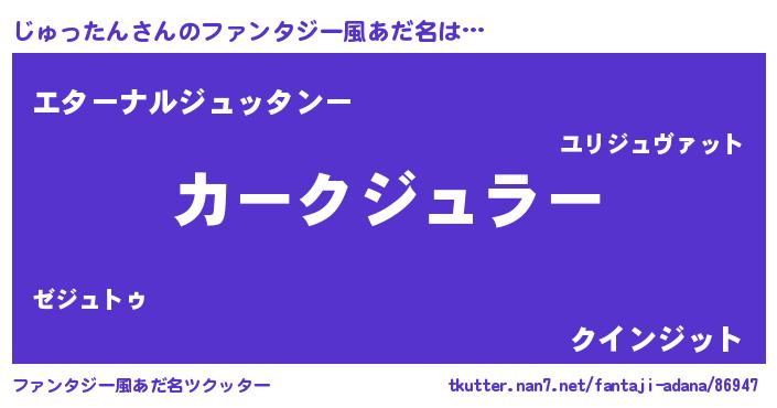 | 男性向けラノベタイトル風あだ名 | 『緋弾のジュッタン』 |