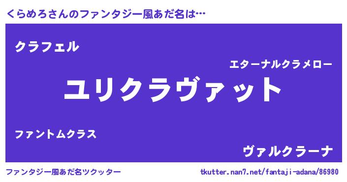 | 女子向けラノベタイトル風あだ名 | 『くらめろの玉の輿計画!』 |