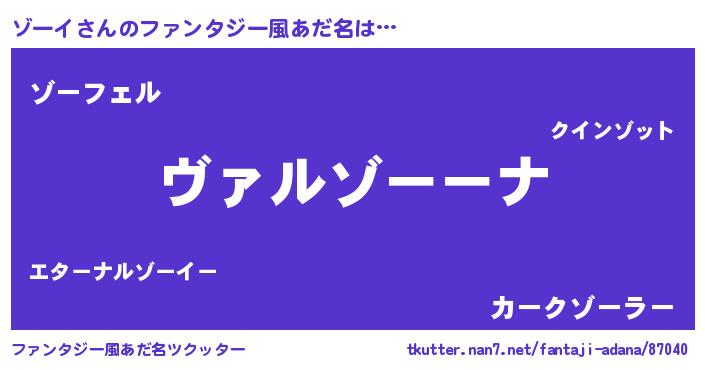 | 男性向けラノベタイトル風あだ名 | 『この素晴らしい世界にゾーイを!』 |