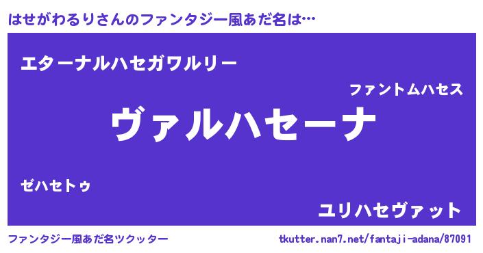 | 男性向けラノベタイトル風あだ名 | 『この素晴らしい世界にはせがわるりを!』 |