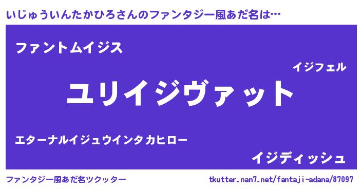 | 女子向けラノベタイトル風あだ名 | 『いじゅういんたかひろの玉の輿計画!』 |
