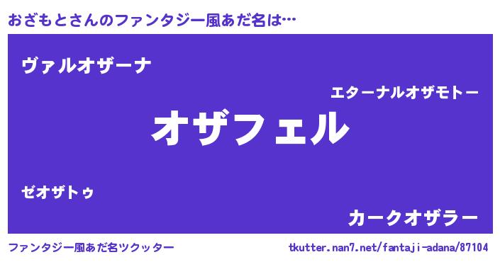 | 男性向けラノベタイトル風あだ名 | 『おざもとの憂鬱』『魔弾の王とおざもと』 |