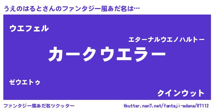 | 自動車の名前っぽいあだ名 | 『フェウーエ』『ウエティマ』『ウンR』 |