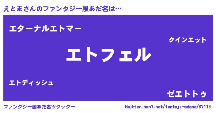 | ヒーロー風カッコイイあだ名 | 『スーパーエトマ』『ウルトラえとまマン』 |