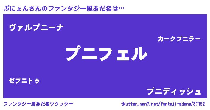 | 男性向けラノベタイトル風あだ名 | 『ぷにょんの憂鬱』『魔弾の王とぷにょん』 |