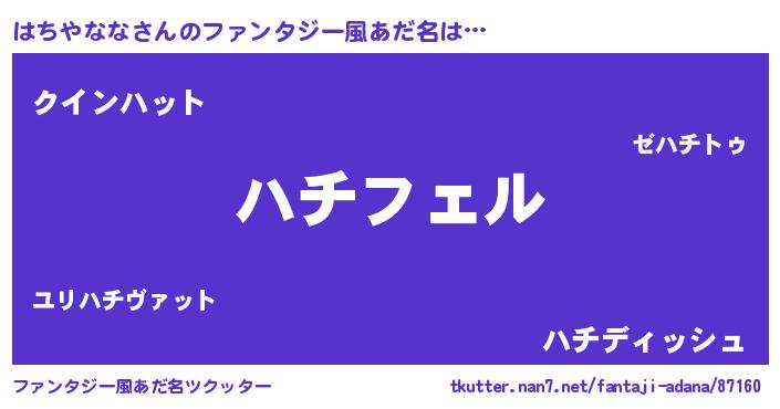 | 女子向けラノベタイトル風あだ名 | 『はちやなな姫と円卓の騎士』 |