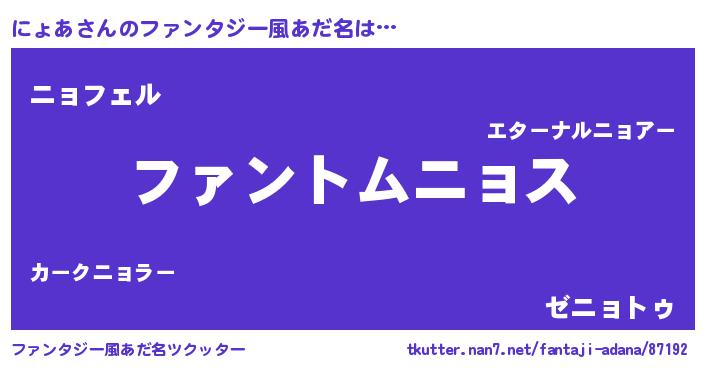 | 男性向けラノベタイトル風あだ名 | 『ダンジョンににょあを求めるのは間違っているだろうか』 |