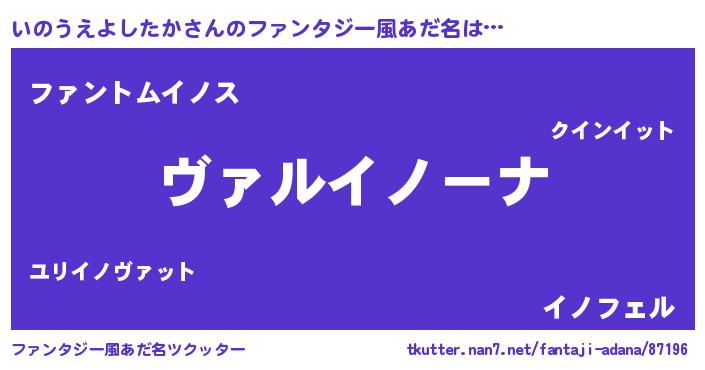 | ポケモン風あだ名 | 『イーノイ』『ヒイノウエヨシタカ』 |