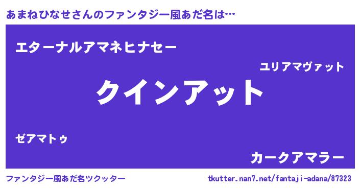 | ヘコむあだ名 | 『酢こんぶ』『あまねひなせ(苦笑)』 |