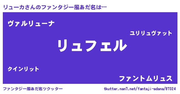 | 男性向けラノベタイトル風あだ名 | 『リューカアートオンライン』 |