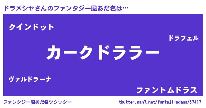 | 欧米人風あだ名 | 『ドラメシヤ・ステッグマイヤー』 |