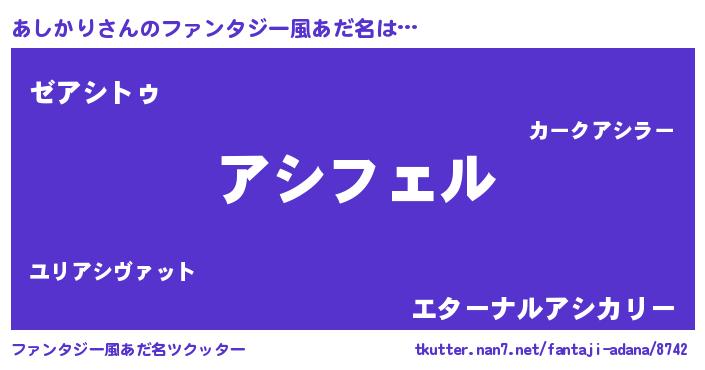 | 男性向けラノベタイトル風あだ名 | 『あしかりの憂鬱』『緋弾のアシカリ』 |