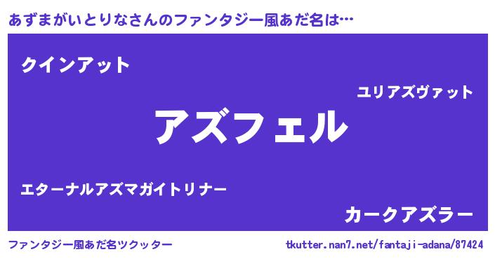 | 欧米人風あだ名 | 『マイケルあずまがいとりな』 |