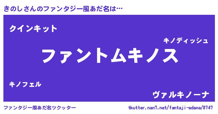| 女子向けラノベタイトル風あだ名 | 『きのし様がみてる』『死神きのしの再婚』 |