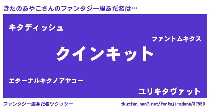 | 男性向けラノベタイトル風あだ名 | 『おまえをオタクにしてやるから、俺をきたのあやこにしてくれ! 』 |