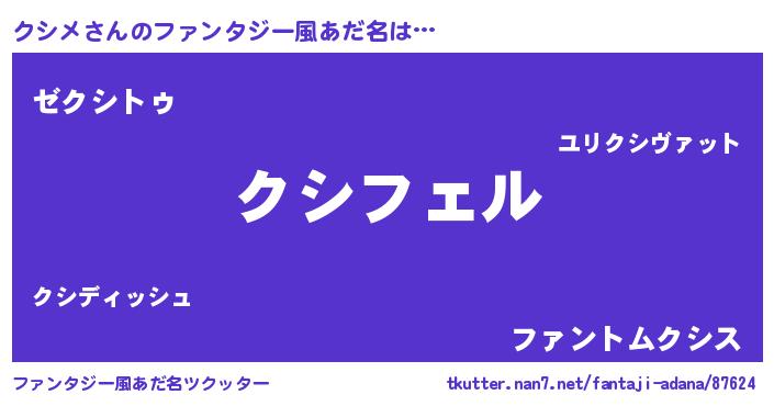 | 男性向けラノベタイトル風あだ名 | 『クシメに滅ぼされるだけの簡単なお仕事です』 |