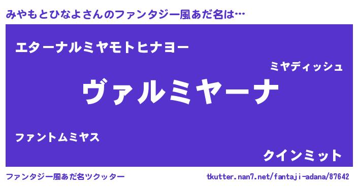 | ヒーロー風カッコイイあだ名 | 『仮面ミヤダー』『ネオミヤモトヒナヨ』 |