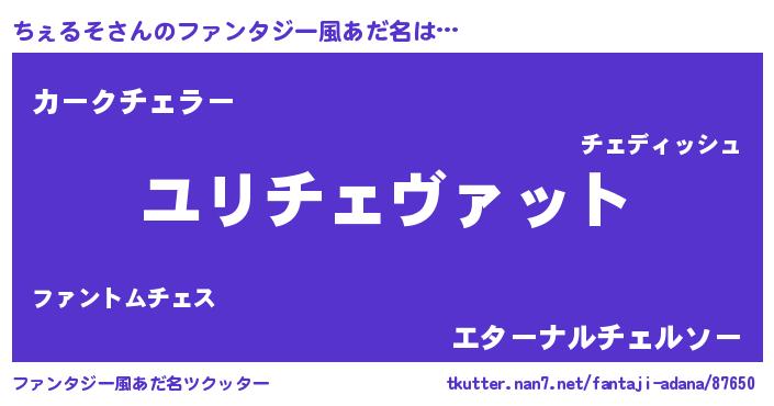 | 意味不明あだ名 | 『なめこ科ちぇるそ属』『自称ちぇるそ』 |