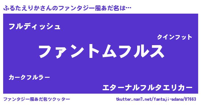 | ポケモン風あだ名 | 『ヒフルタエリカ』『フルゴンZ』 |