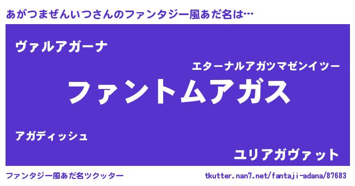 | 女子向けラノベタイトル風あだ名 | 『あがつまぜんいつは平凡を望む』 |