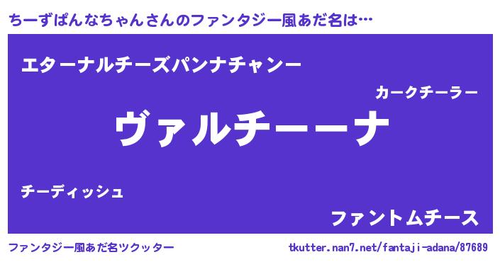 | 男性向けラノベタイトル風あだ名 | 『この素晴らしい世界にちーずぱんなちゃんを!』 |