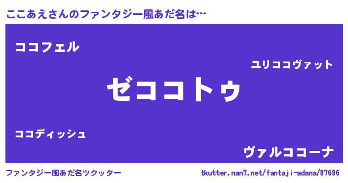 | 意味不明あだ名 | 『自称ここあえ』『ペロリンここあえ』 |