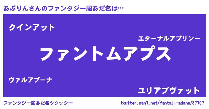 | ヒーロー風カッコイイあだ名 | 『魔戒騎士アプ』『正義の使者あぷりん』 |